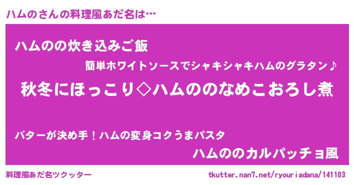| ヘコむあだ名 | 『ハムっぺ』『ハムの(笑)』 |