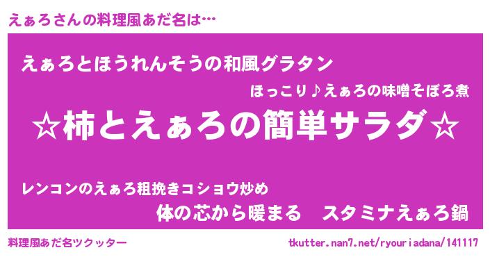 | 意味不明あだ名 | 『なめこ科えぁろ属』『ペロリンえぁろ』 |