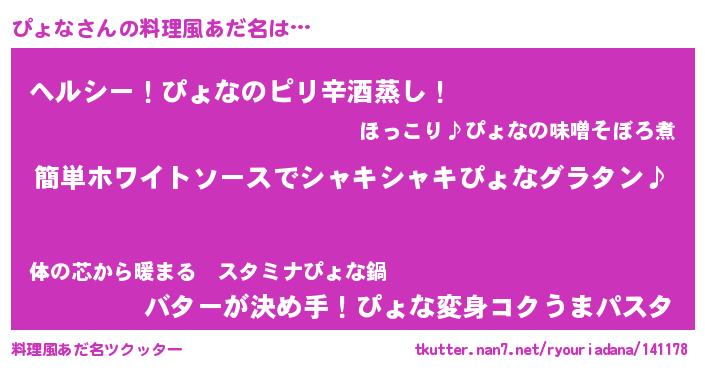 | 男性向けラノベタイトル風あだ名 | 『ぴょなの嫁は女の子じゃないと思った?』 |