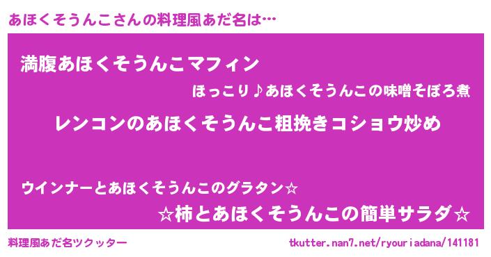 | 男性向けラノベタイトル風あだ名 | 『魔法科高校のあほくそうんこ』 |