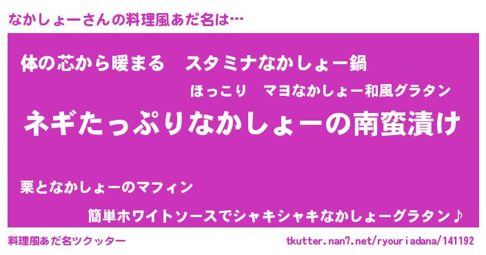 | ファンタジー風あだ名 | 『ナカフェル』『エターナルナカショーー』 |