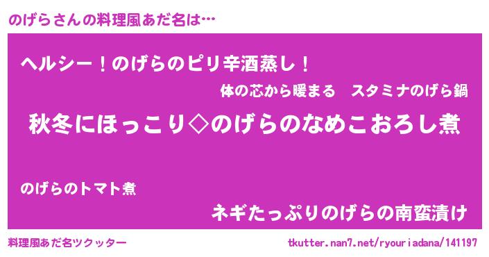 | ヘコむあだ名 | 『のげにゅー』『酢こんぶ』 |