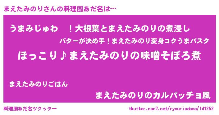 | 恥ずかしいあだ名 | 『プリティーまえたみのり』『まえっちょ』 |