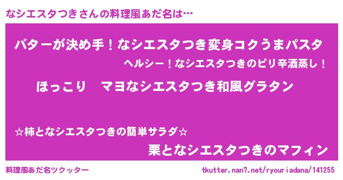 | ヘコむあだ名 | 『なシエスタつき(笑)』『なシにゅー』 |