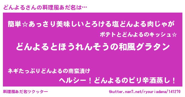 | 胡散臭い通販商品みたいなあだ名 | 『前代未聞の水素水…その名も「どんよる」』 |
