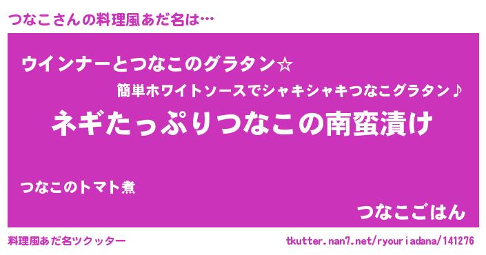 | ファンタジー風あだ名 | 『ツナフェル』『エターナルツナコー』 |