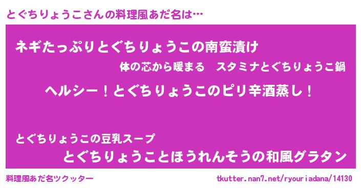 | ヘコむあだ名 | 『とぐふぇ~』『酢こんぶ』『とぐお』 |