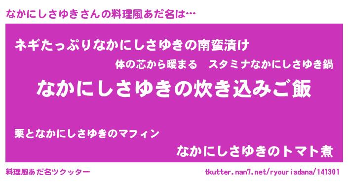 | ヘコむあだ名 | 『なかっふぃ~』『酢こんぶ』 |