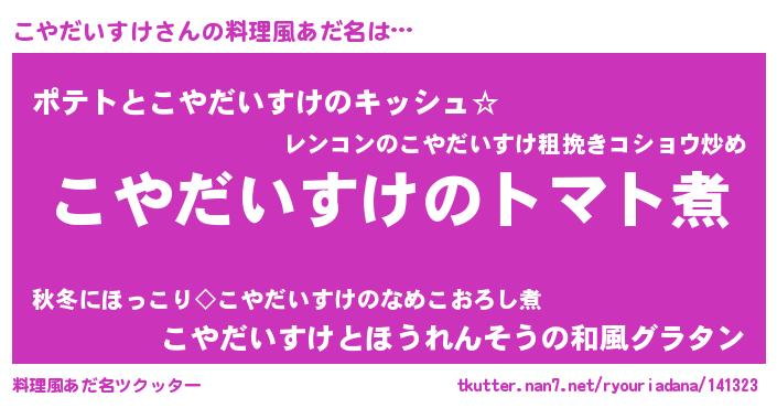 | 男性向けラノベタイトル風あだ名 | 『おまえをオタクにしてやるから、俺をこやだいすけにしてくれ! 』 |