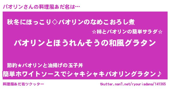 | ピコ太郎風あだ名 | 『パオ二郎』『パコ八郎』『ピパ十郎』 |