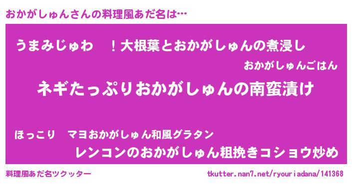 | 2回繰り返すあだ名 | 『おかおか』『おおかか』『むかむか』 |