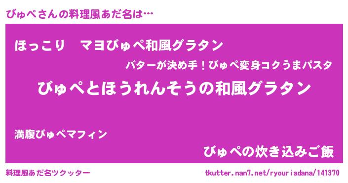 | ヒーロー風カッコイイあだ名 | 『仮面ビュダー』『天空の使者びゅぺ』 |