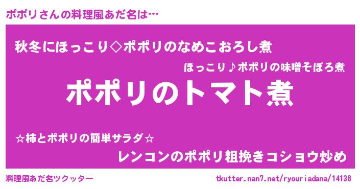 | 女子向けラノベタイトル風あだ名 | 『ポポリ夫妻のなれそめ』 |