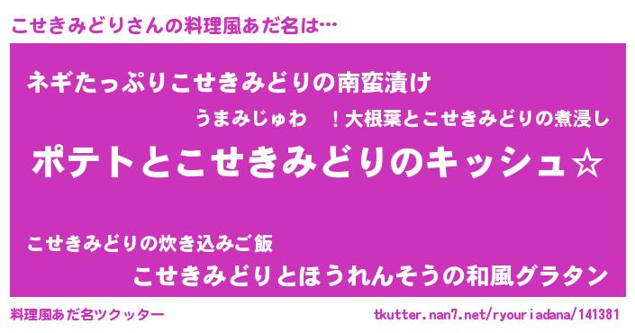 | 意味不明あだ名 | 『とにかく怪しいこせきみどり』 |