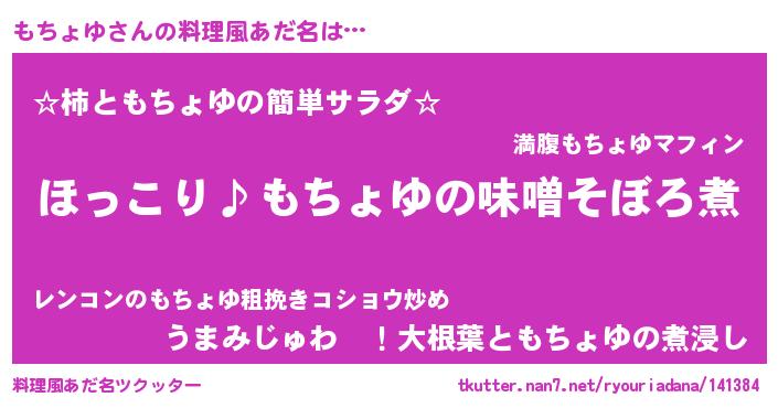 | 欧米人風あだ名 | 『マイケルもちょゆ』 |