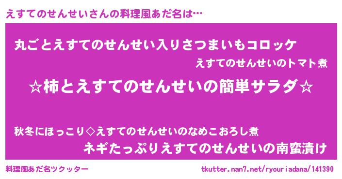 | 意味不明あだ名 | 『住所不定無職えすてのせんせい(11歳)』 |