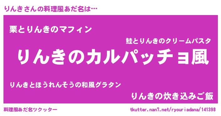 | 女子向けラノベタイトル風あだ名 | 『りんきが死なない童話 林檎のりんきの診療簿』 |
