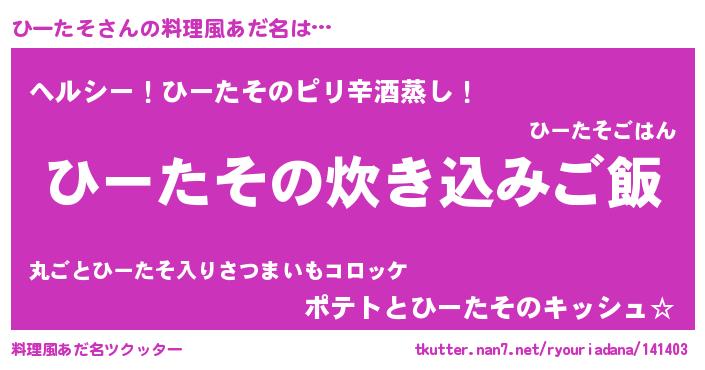 | 胡散臭い通販商品みたいなあだ名 | 『芸能人もオススメする高麗人参…その名も「ひーたそ」』 |
