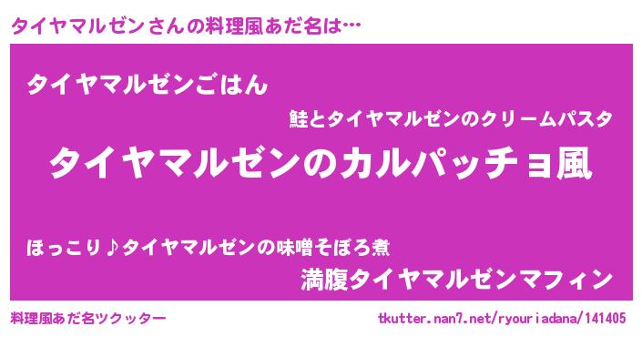 | 欧米人風あだ名 | 『ダレノガレタイヤマルゼン』 |