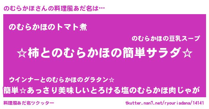 | 女子向けラノベタイトル風あだ名 | 『シンデレラのむらかほ家の靴箱館』 |