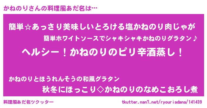 | 意味不明あだ名 | 『自称かねのり』『永久保存かねのり』 |