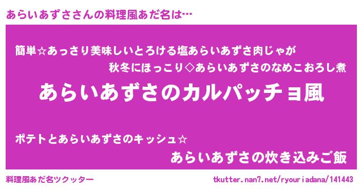 | 意味不明あだ名 | 『住所不定無職あらいあずさ(6歳)』 |