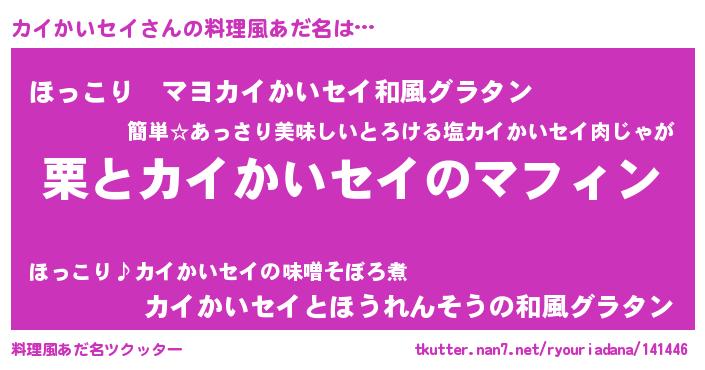 | ヘコむあだ名 | 『カイかいセイ(遠い目)』『カイふぇ~』 |