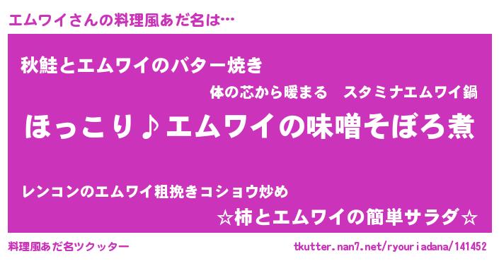 | ポケモン風あだ名 | 『エムチュウ』『ゼニエム』 |