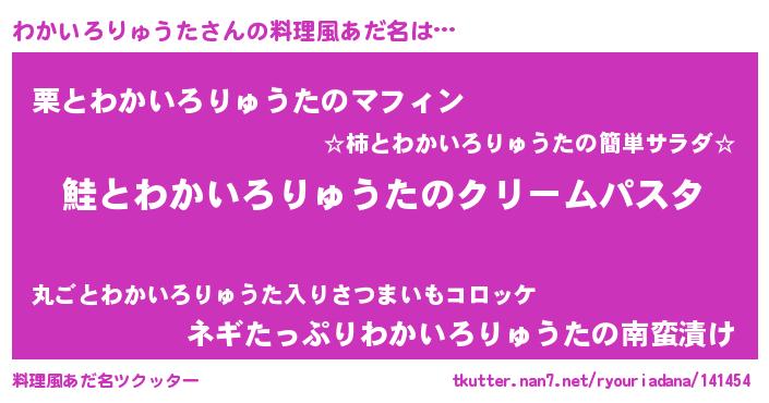 | 意味不明あだ名 | 『眠気覚ましガムわかいろりゅうた味』 |