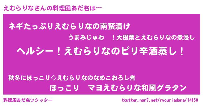| 男性向けラノベタイトル風あだ名 | 『Re:えむらりなから始める異世界生活』 |