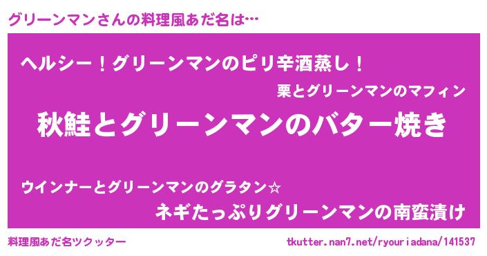| ヒーロー風カッコイイあだ名 | 『ネオグリーンマン』『仮面グリダー』 |
