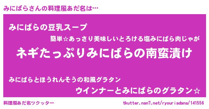 | ヘコむあだ名 | 『みにふぇ~』『みにぷりん』 |