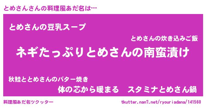 | 意味不明あだ名 | 『ペロリンとめさん』『永久保存とめさん』 |