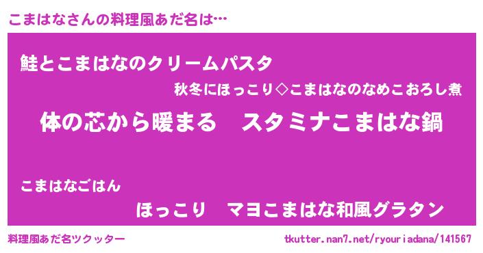 | 意味不明あだ名 | 『こまはなフォーエバー』『自称こまはな』 |