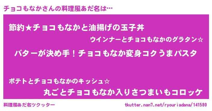 | 女子向けラノベタイトル風あだ名 | 『チョコもなか恋絵巻』 |