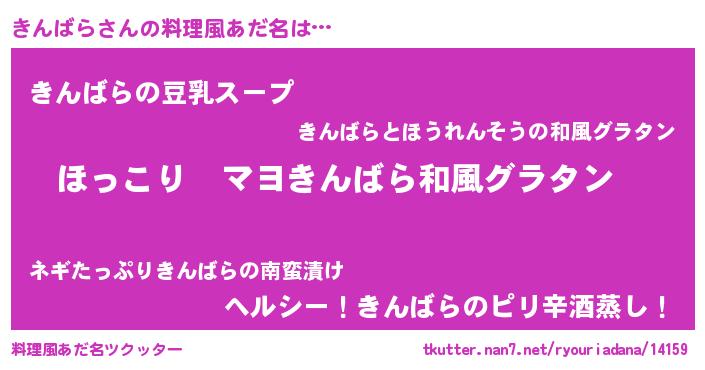 | 男性向けラノベタイトル風あだ名 | 『この素晴らしい世界にきんばらを!』 |