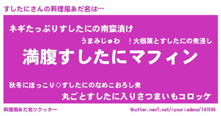 | 女子向けラノベタイトル風あだ名 | 『異世界で失敗しない100のすしたに』 |