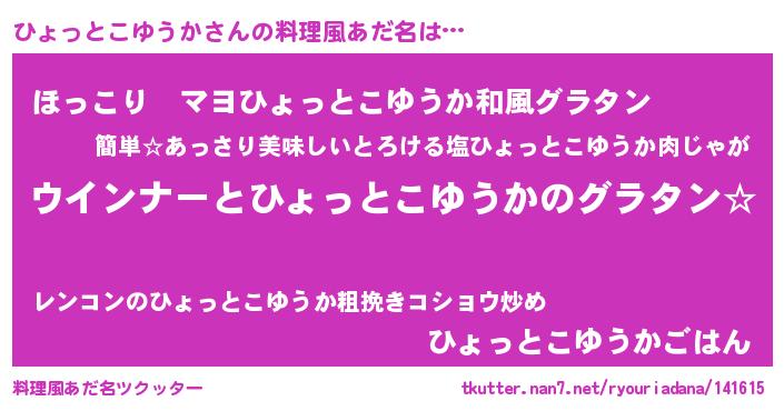 | 男性向けラノベタイトル風あだ名 | 『やはりひょっとこゆうかの青春ラブコメはまちがっている 』 |