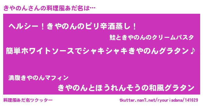 | 男性向けラノベタイトル風あだ名 | 『きやのんの嫁は女の子じゃないと思った?』 |