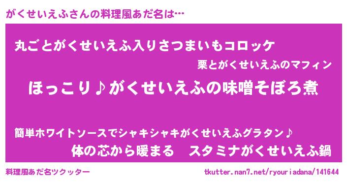 | ヘコむあだ名 | 『がくにー』『牛乳』『がくお』 |