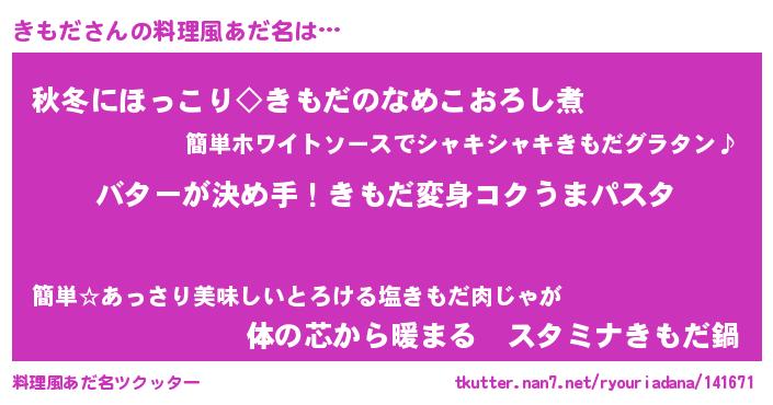 | 意味不明あだ名 | 『眠気覚ましガムきもだ味』『自称きもだ』 |