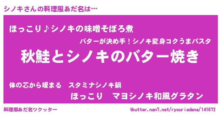 | ファンタジー風あだ名 | 『シノディッシュ』『シノフェル』 |