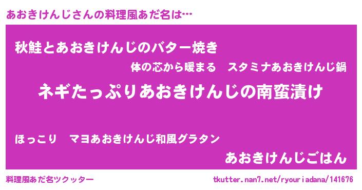 | 男性向けラノベタイトル風あだ名 | 『アオキケンジアートオンライン』 |