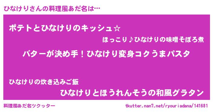 | 男性向けラノベタイトル風あだ名 | 『ノーゲーム・ノーヒナケリ』 |