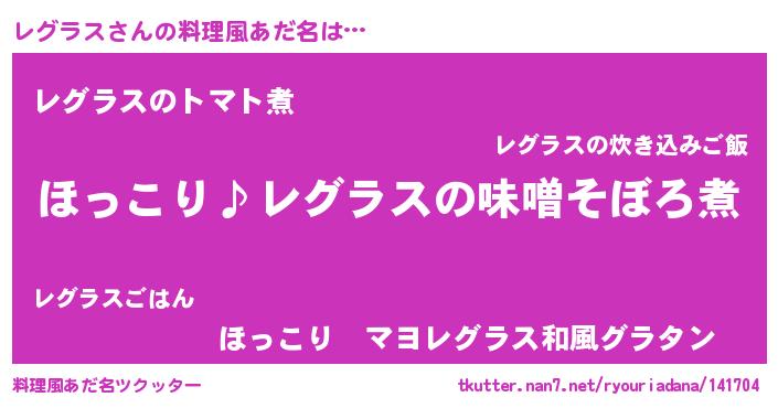 | 男性向けラノベタイトル風あだ名 | 『レグラスの憂鬱』『レグラススレイヤー』 |