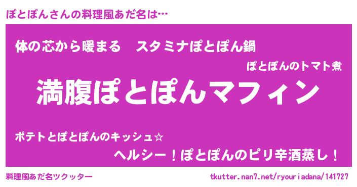 | 女子向けラノベタイトル風あだ名 | 『異世界で失敗しない100のぽとぽん』 |