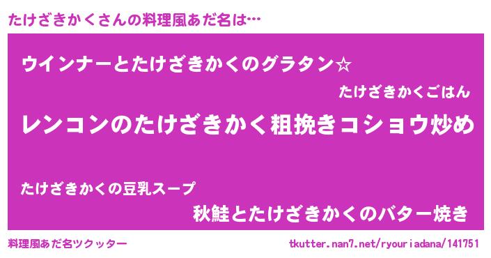 | 意味不明あだ名 | 『自称たけざきかく』 |