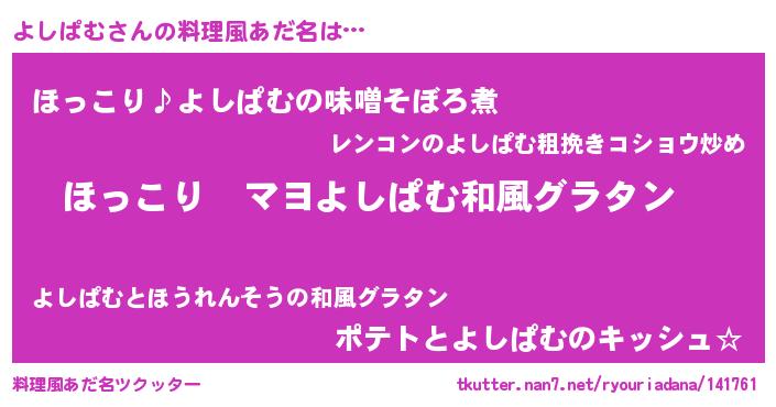 | 意味不明あだ名 | 『住所不定無職よしぱむ(50歳)』 |