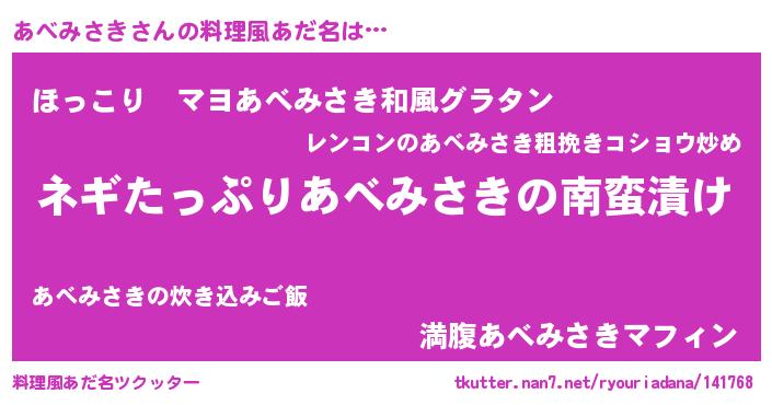 | 意味不明あだ名 | 『ペロリンあべみさき』『自称あべみさき』 |