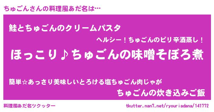 | 男性向けラノベタイトル風あだ名 | 『ちゅごんの憂鬱』 |